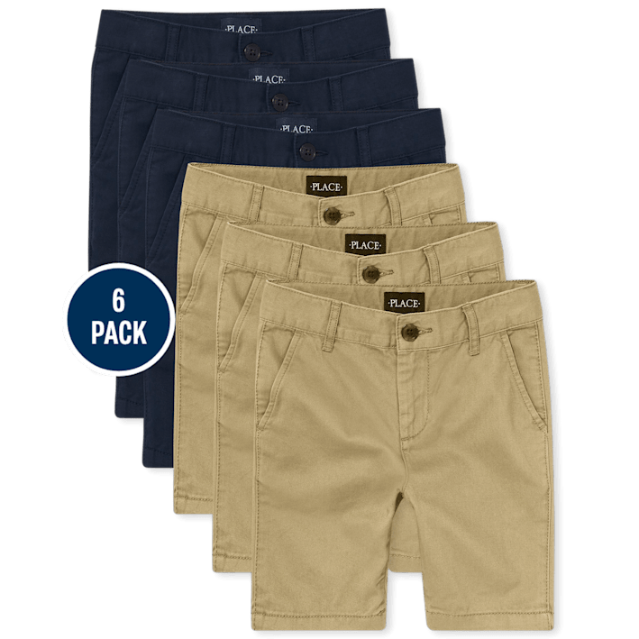 กางเกงขาสั้นผ้าชิโน6แพ็คหลากสีสำหรับเด็กผู้ชายชุดนักเรียนที่สมบูรณ์แบบ
