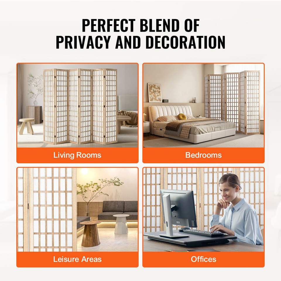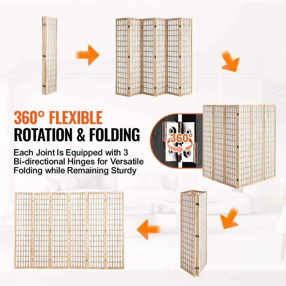 ฉากกั้นห้องพับได้ 6 บาน ทำจากไม้สไตล์ญี่ปุ่น สำหรับตกแต่งภายในและแบ่งพื้นที่