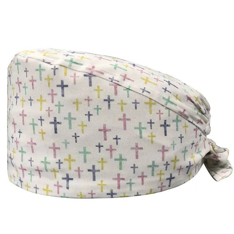 หมวกคลุมผมแบบปรับได้ 6 ชิ้น สำหรับผู้หญิงและผู้ชาย หมวกผ่าตัดสำหรับพยาบาล มีกระดุมและสายรัดดูดซับเหงื่อ