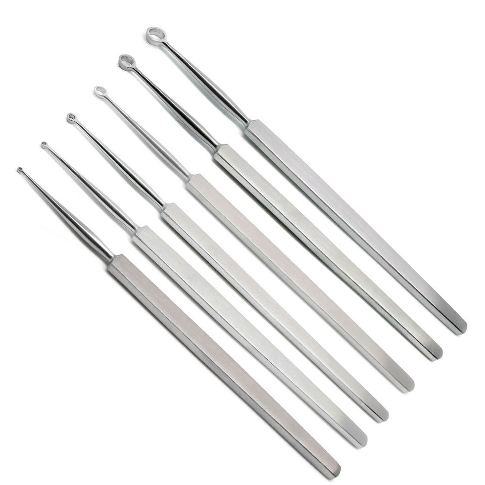 6 Pcs Fox Dermal Curettes Dermatology 1mm-6mm ENT Surgical Instruments