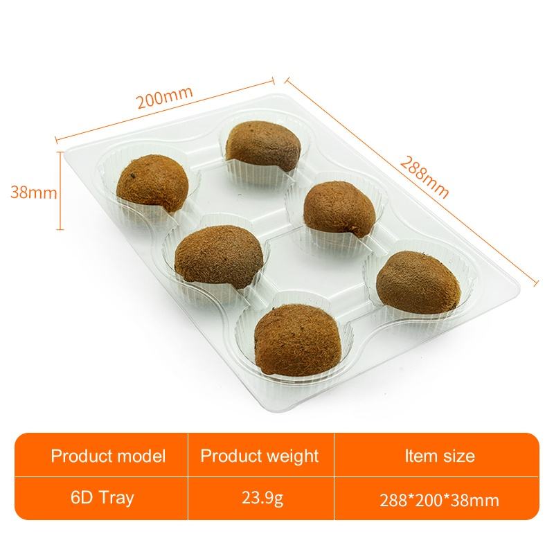 ถาดเค้กผลไม้พลาสติก PET 6ชิ้นกล่องมัฟฟินแห้วเปล่าไม่มีฝาปิดสำหรับบรรจุอาหารลูกอมดิสเพลย์