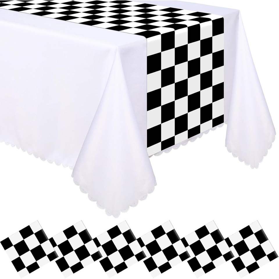 ผ้าปูโต๊ะลายตารางหมากรุกพลาสติก 6 ชิ้น ขนาด 14 x 108 นิ้ว ลายสนามแข่งรถ ธีมรถแข่งความเร็วสูง สำหรับตกแต่งงานวันเกิดธีมรถแข่ง