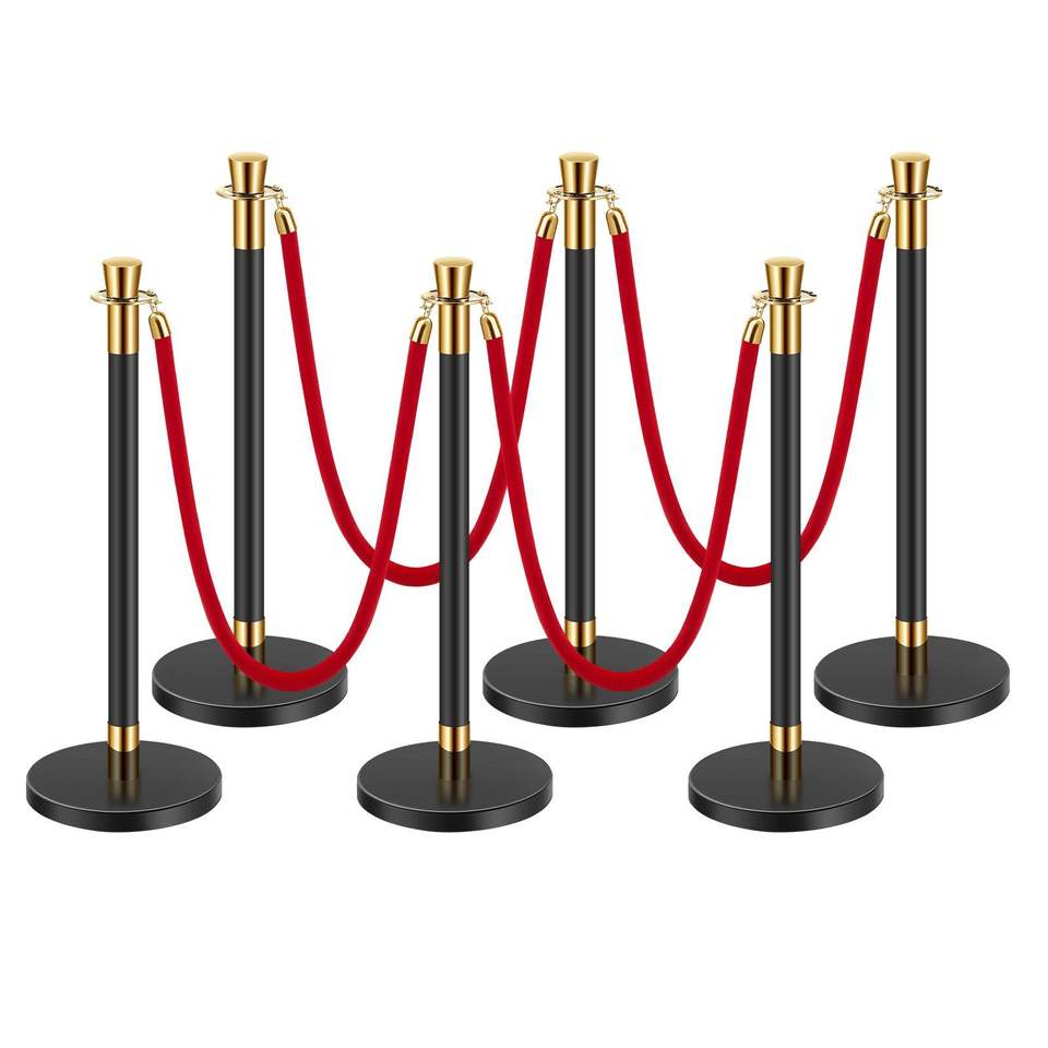 เสาคั่นสแตนเลส 6 ชิ้น พร้อมเชือกกำมะหยี่สีแดง 4 เส้น สำหรับควบคุมฝูงชน พร้อมขาตั้งป้าย