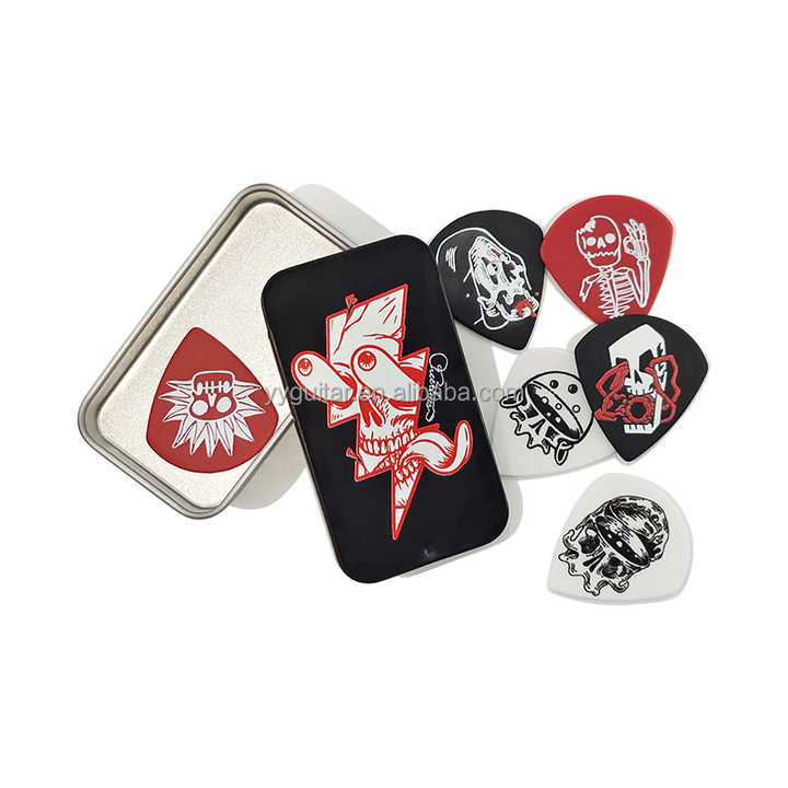 ชุดปิ๊กกีต้าร์แจ๊ส3ชิ้นพร้อมฝาปิดกล่องดีบุก6ชิ้น/เซ็ตพิมพ์ลายตามสั่งสีสันสดใส