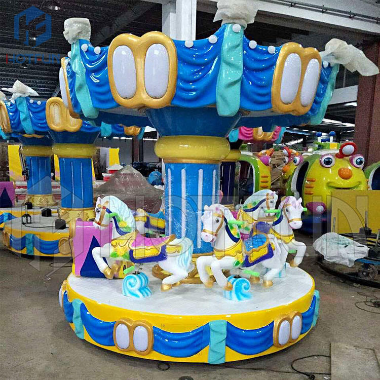 เครื่องเล่นม้าหมุนไฟเบอร์กลาส 6 ที่นั่ง พร้อมเพลงจากการ์ด SD เครื่องเล่นเกมหมุนได้ ได้รับการรับรองมาตรฐาน CE สำหรับใช้ภายใน/ภายนอกอาคาร