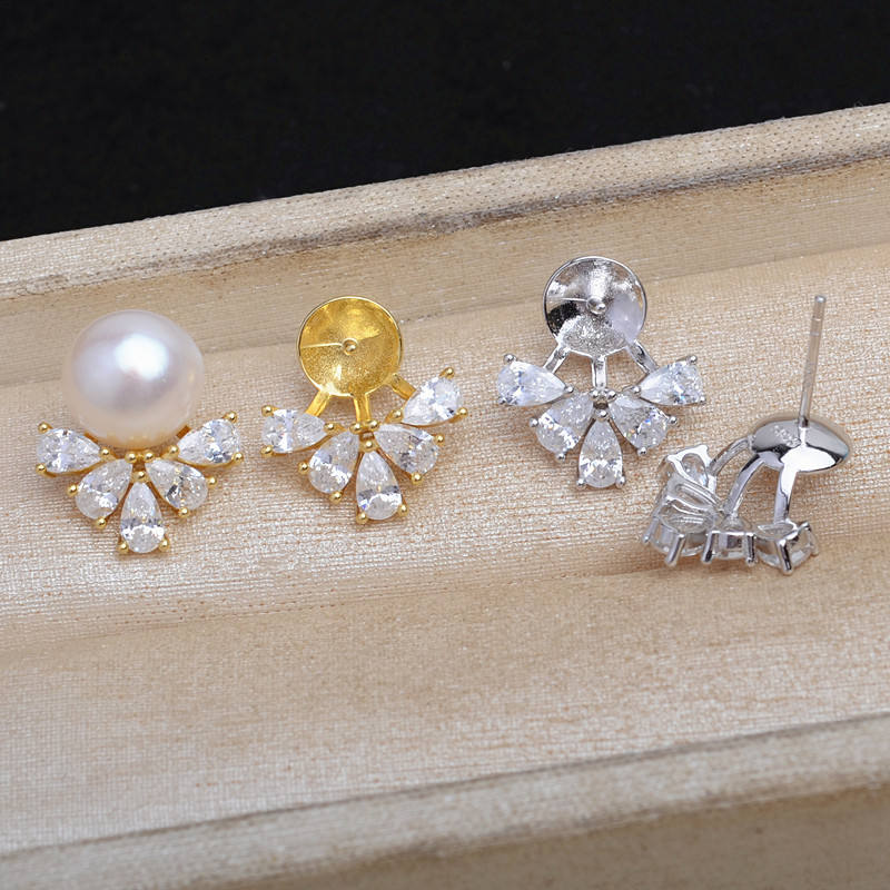 ฐานรองต่างหูเงินแท้ 925 รูปทรง 6 กลีบ สำหรับงาน DIY เครื่องประดับมุก ขนาด 10-12 มม. รุ่น JG5902 อุปกรณ์ทำเครื่องประดับ