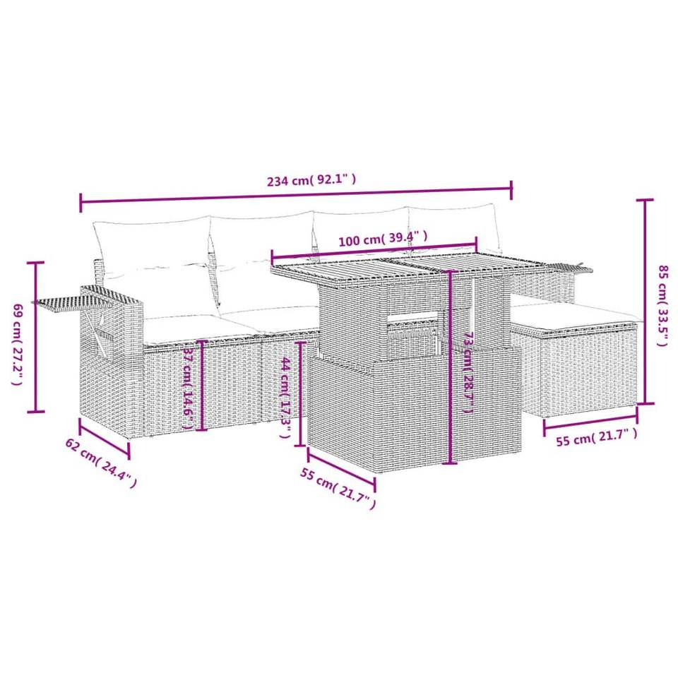 ชุดโซฟาสวนแบบปรับได้ 6 ชิ้น พร้อมที่วางแขน วัสดุหวาย PE สีดำ เฟอร์นิเจอร์กลางแจ้งที่สะดวกสบายและมีสไตล์