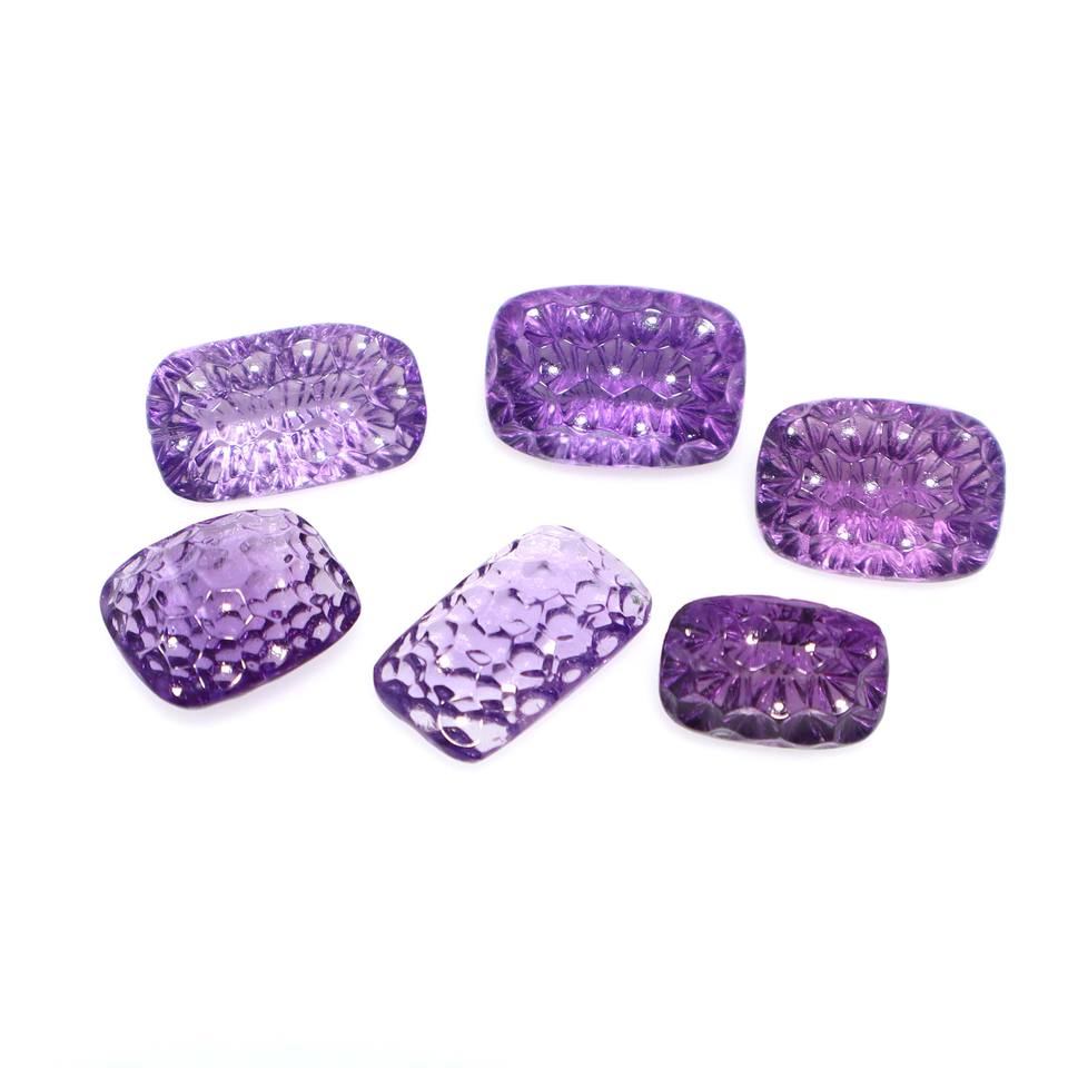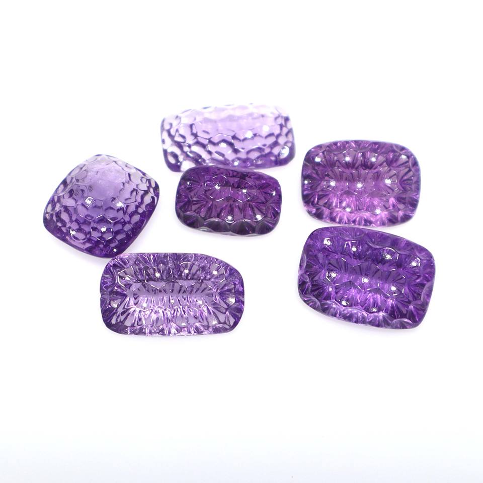 6ชิ้นอเมทิสต์แกะสลักพลอยอเมทิสต์น้ำผึ้งหวีแกะสลักลายพลอยอเมทิสต์แกะสลักจากธรรมชาติ