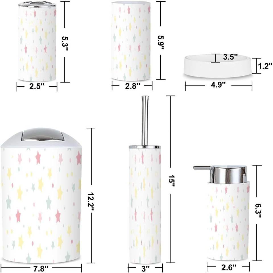 ชุดอุปกรณ์ห้องน้ำ6ชิ้นน่ารักสีสันสดใสดอกไม้สีรุ้งวาดด้วยมือองค์ประกอบธรรมชาติที่ไร้รอยต่อสไตล์โบฮีเมียนตกแต่งบ้านทรงสี่เหลี่ยม