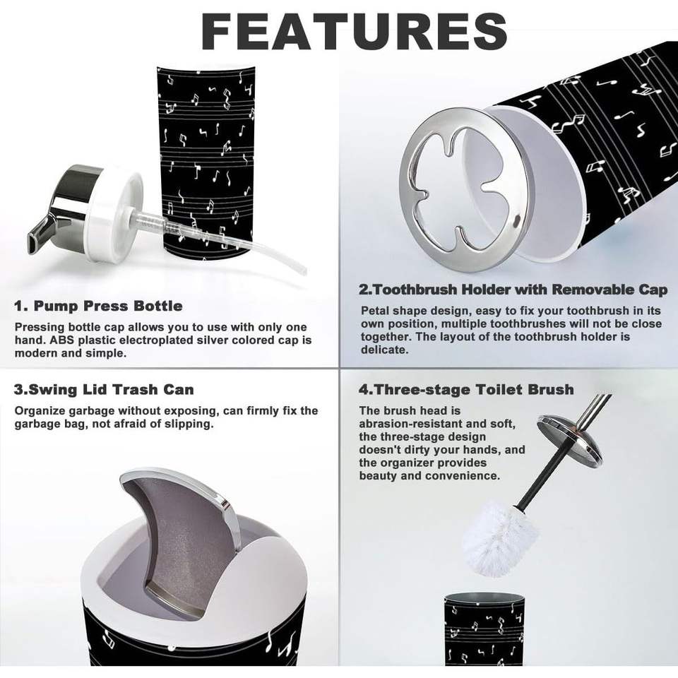 ชุดอุปกรณ์ห้องน้ำ6ชิ้นลายโน้ตดนตรีสี่เหลี่ยมเคาน์เตอร์งานฝีมือตกแต่งบ้านสำหรับห้องน้ำ