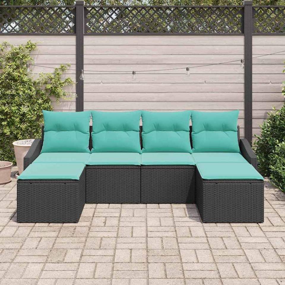 ชุดโซฟาสวนหวายโพลีสีดำ 6 ชิ้นพร้อมเบาะรองนั่ง