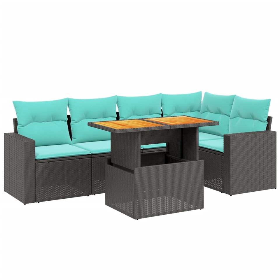 ชุดโซฟาลานบ้านหวายโพลีสีดำ 6 ชิ้นพร้อมชุดเบาะรองนั่งในสวน