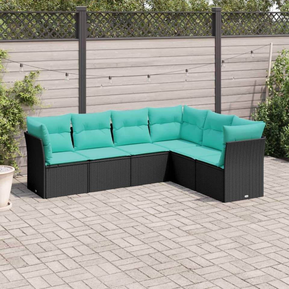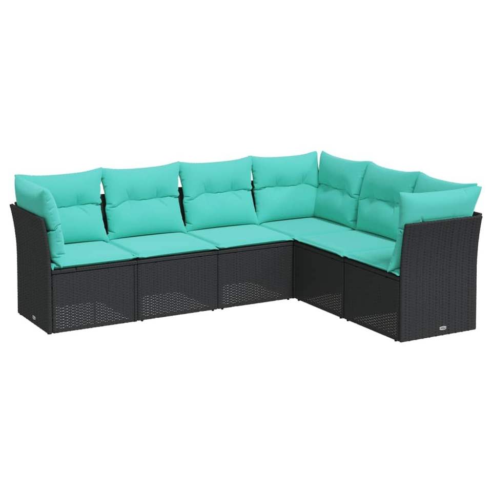 ชุดโซฟาลานบ้านหวายโพลีสีดำ 6 ชิ้นพร้อมเบาะรองนั่งเฟอร์นิเจอร์กลางแจ้ง