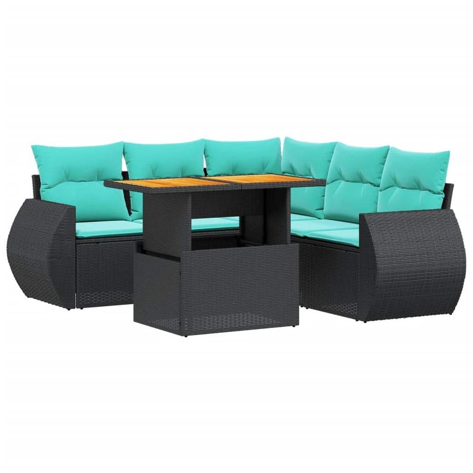 ชุดโซฟาลานบ้านหวายโพลีสีดำ 6 ชิ้นพร้อมชุดเบาะรองนั่งในสวน