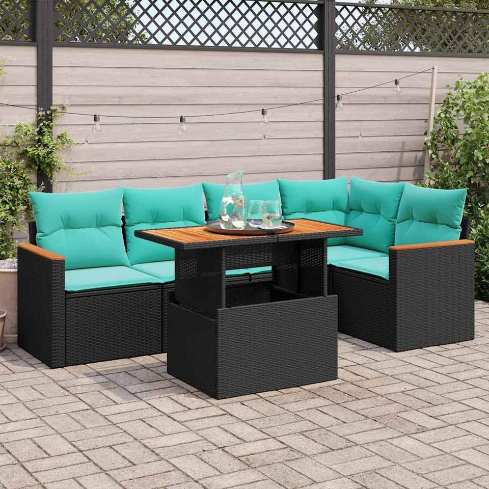 ชุดโซฟาลานบ้านหวายโพลีสีดำ 6 ชิ้นพร้อมชุดเบาะรองนั่งในสวน