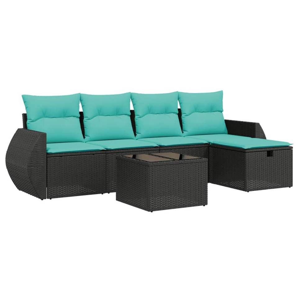 ชุดโซฟาลานบ้านหวายโพลีสีดำ 6 ชิ้นพร้อมชุดเบาะรองนั่งในสวน