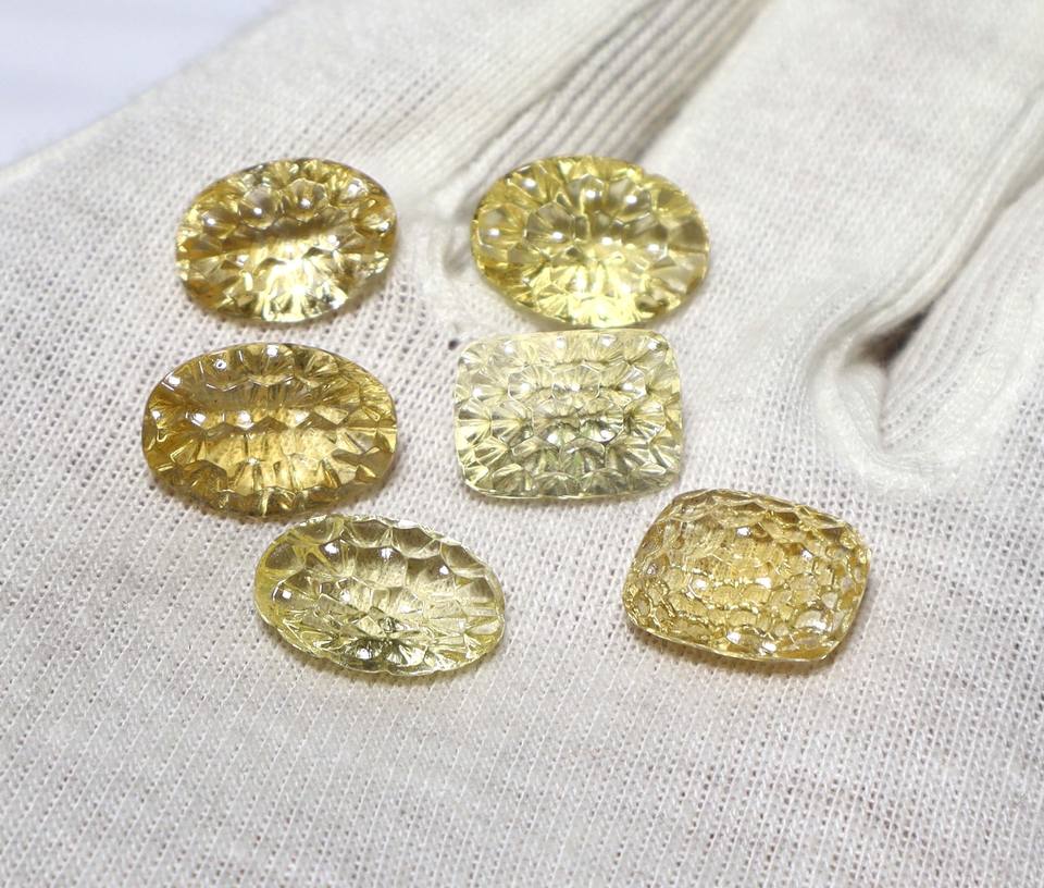 พลอยซิทรินควอตซ์ธรรมชาติ 6 เม็ด รูปทรงรังผึ้ง ขนาด 13x9 มม.-14x10 มม. น้ำหนัก 30 กะรัต สำหรับสีเหลือง