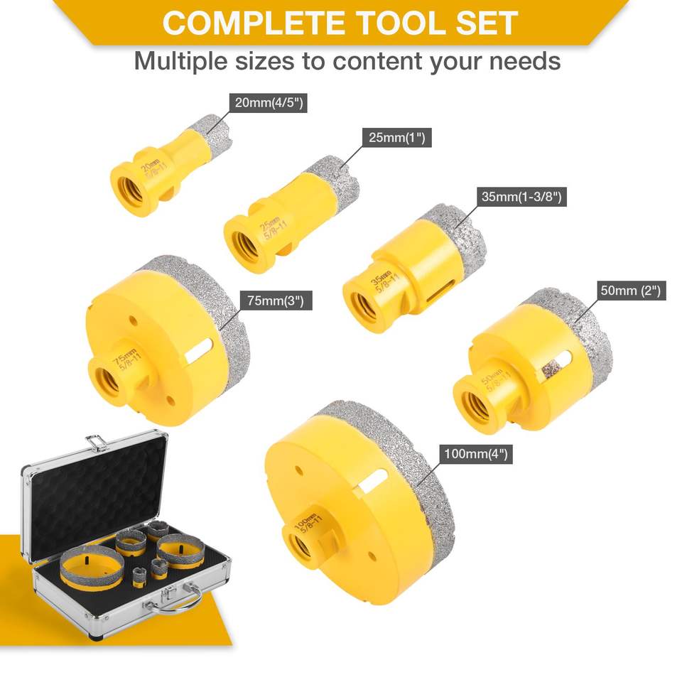 ชุดดอกสว่านเจาะกระเบื้องเพชร 6 ชิ้น ชุดเลื่อยเจาะรูเพชร 6 ชิ้น สำหรับกระเบื้อง หินอ่อน แก้ว หินแกรนิต แบบเชื่อมสุญญากาศ