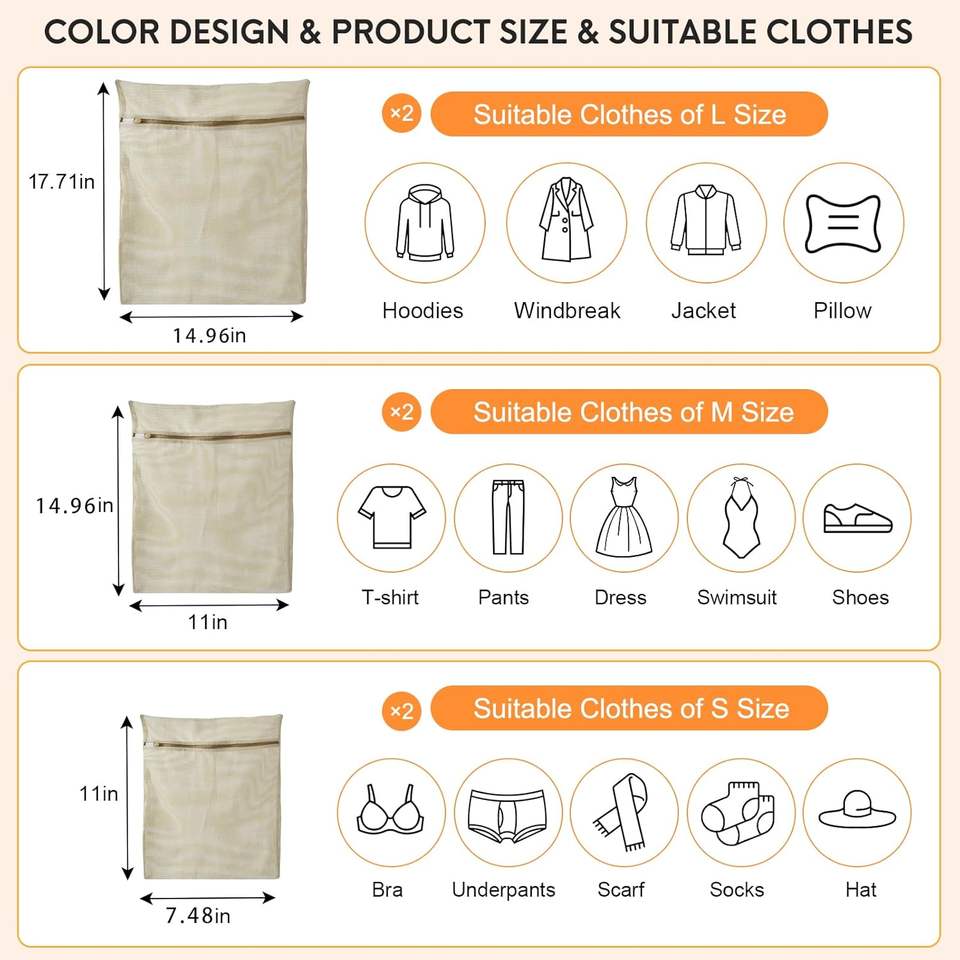 ถุงซักผ้าผ้าคอตตอนออร์แกนิกทนทาน6ชิ้นมีซิประบายอากาศได้ดีชุดชั้นในรองเท้ากางเกง