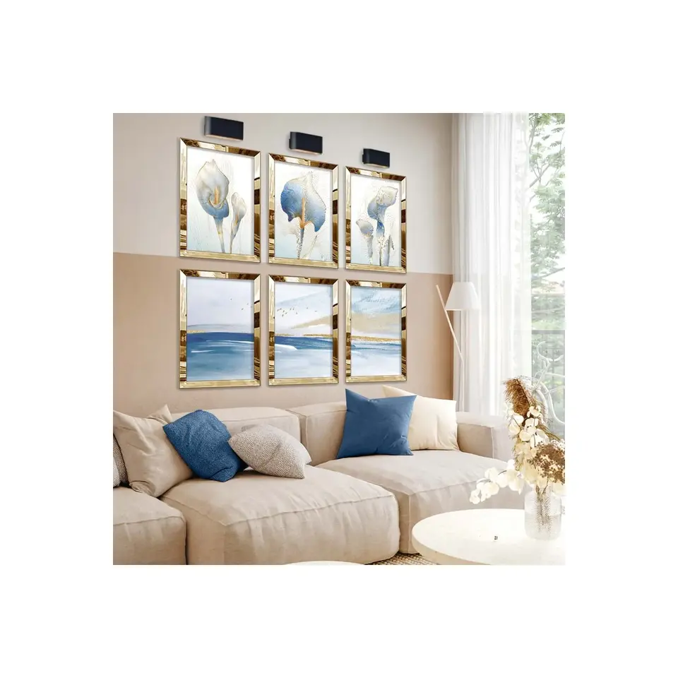 ชุดจิตรกรรม MDF แบบไม่เป็นขอบ6ชิ้นภาพวาดดีไซน์ดอกไม้และธีมนามธรรมภาพวาดลูกแก้วสำหรับตกแต่งบ้าน