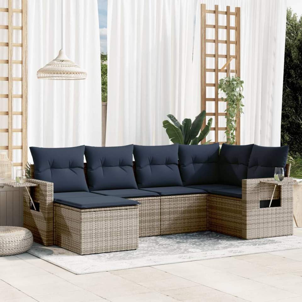 ชุดโซฟาสวนหวายโพลีสีเทา 6 ชิ้นพร้อมเบาะรองนั่ง