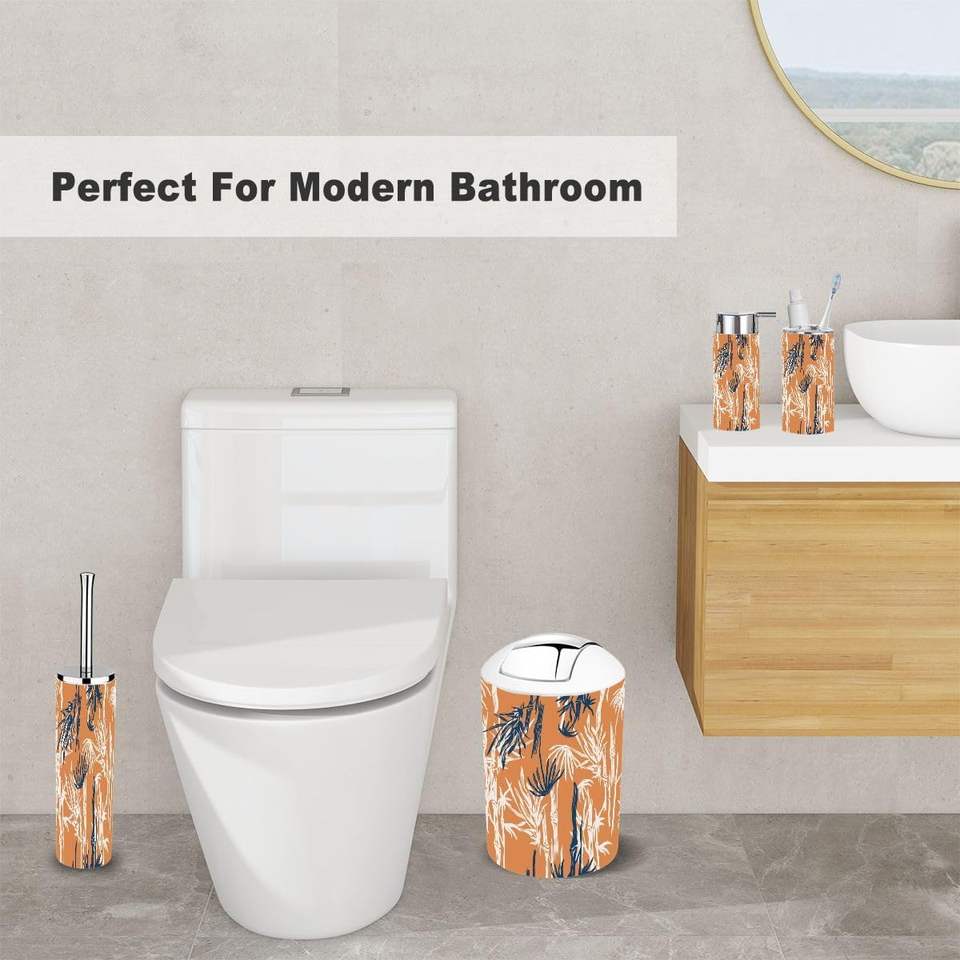 ชุดอุปกรณ์ห้องน้ำไม้ไผ่พิมพ์ลายป่า6ชิ้นสีส้มซีดไร้รอยต่อของตกแต่งบ้านอุปกรณ์อาบน้ำ