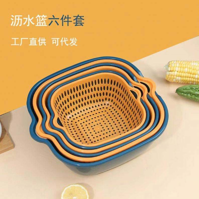 ตะกร้ากรองเศษอาหาร 6 ชิ้นอเนกประสงค์ สำหรับล้างและเก็บผักผลไม้ ตะกร้าพลาสติก