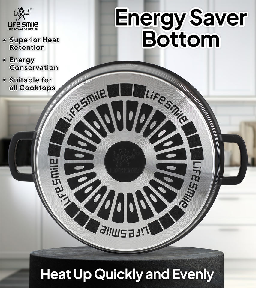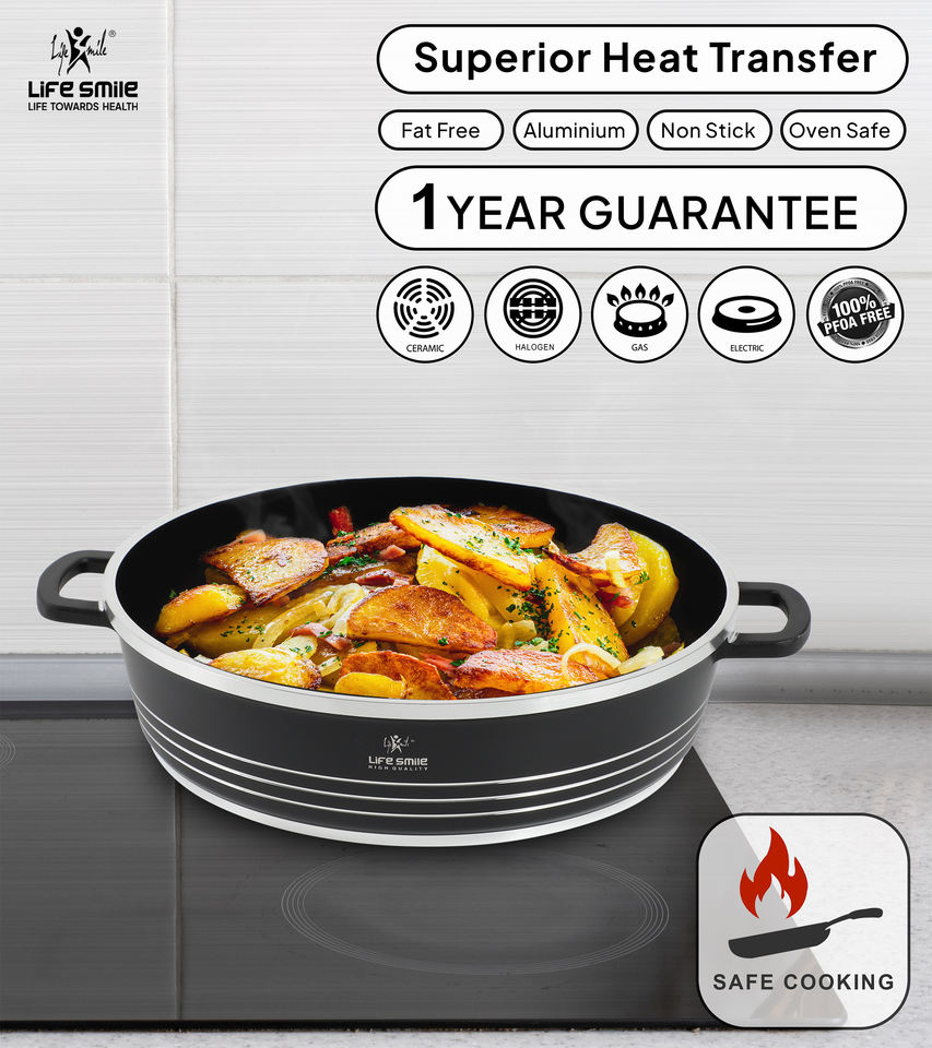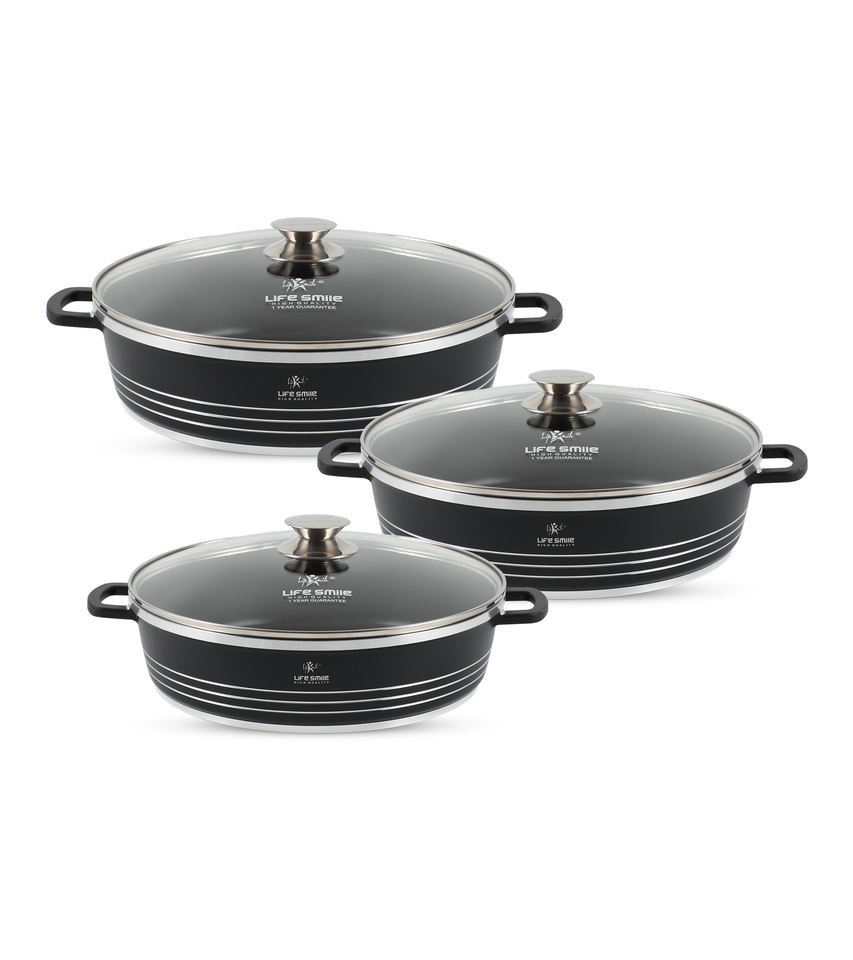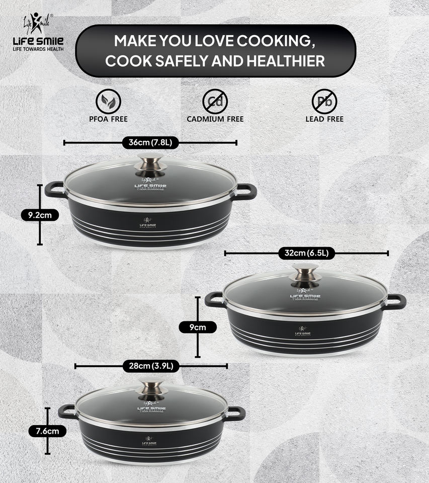 ชุดหม้อตื้นเคลือบกันติด 6 ชิ้น, เคลือบสารกันติดเพื่อสุขภาพ ปราศจากสาร PFOA, ชุดเครื่องครัวสีดำหรูหราพร้อมฝาปิด