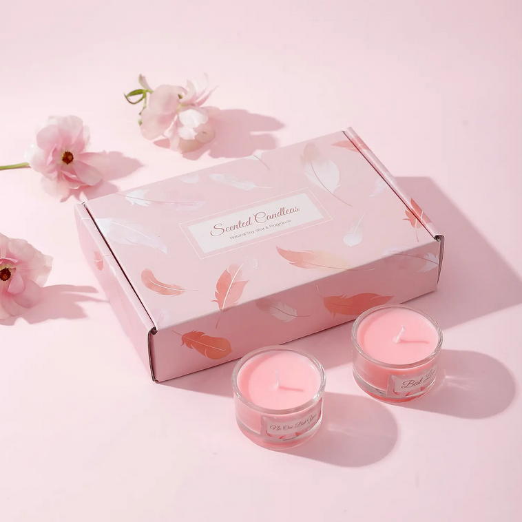 เทียนหอมอโรมาเธอราพีสีชมพู6ชิ้นเทียนหอมโรแมนติกกล่องของขวัญสำหรับเทศกาลคริสต์มาสที่สงบเงียบ