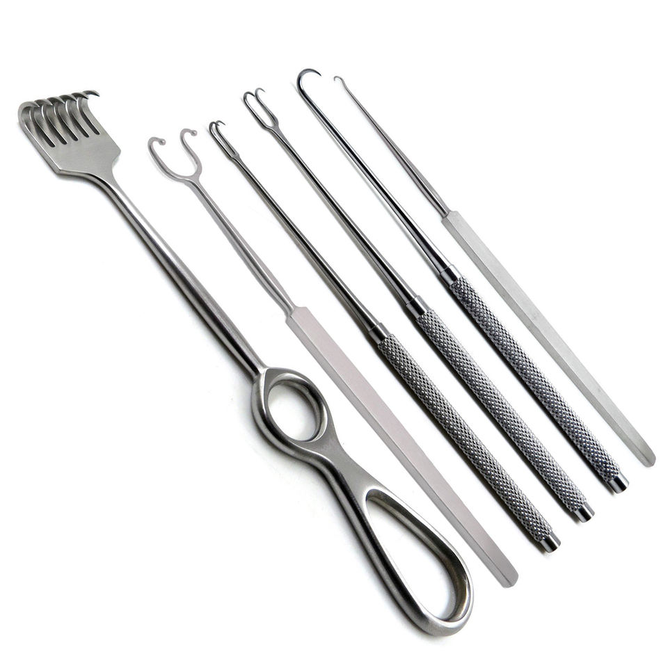 ชุด 6 ชิ้นของ Fomon Volkman โจเซฟ Gillies เครื่องดึงกลับผ่าตัดสแตนเลสคมผิวตะขอดึงกลับ