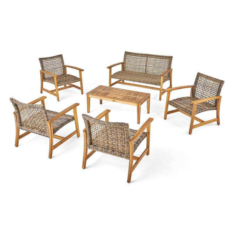 ชุดเฟอร์นิเจอร์ไม้สักและหวายกลางแจ้ง6ชิ้นทันสมัยพร้อมเก้าอี้โซฟา4ตัวโต๊ะกาแฟ