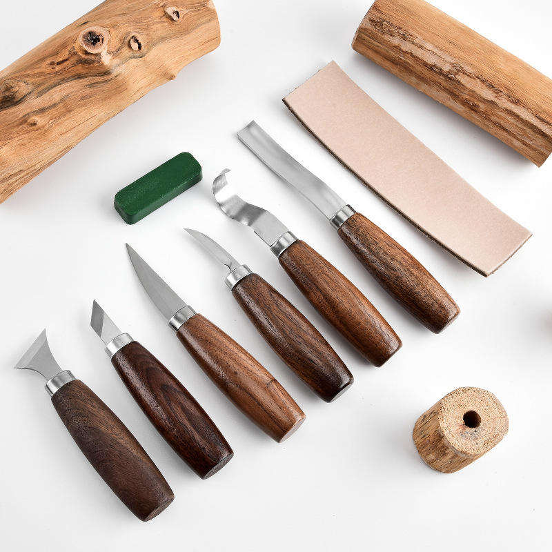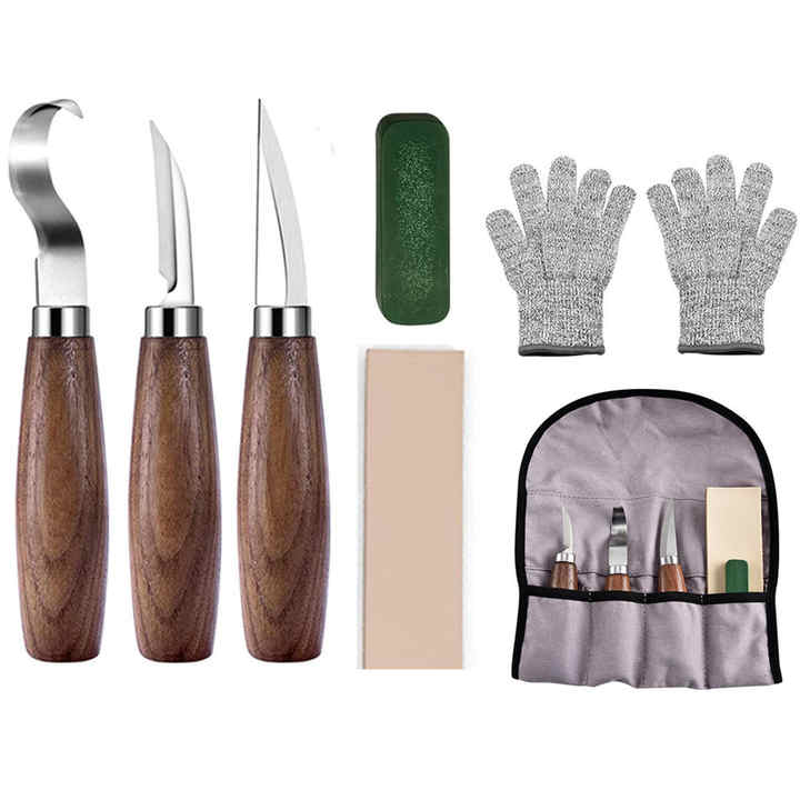 ชุดมีดแกะสลักไม้และโลหะ 6 ชิ้น พร้อมมีดปอกเปลือก ที่ตัก และถุงผ้า สำหรับงานไม้และงานปั้นดินเหนียว