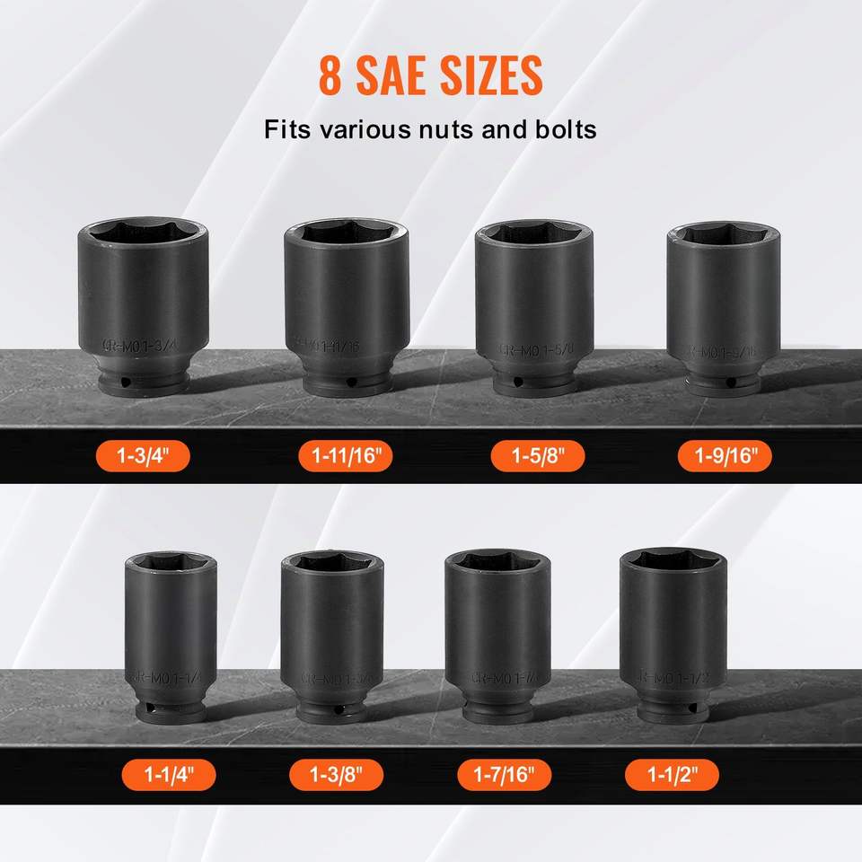 6-Point ชุดซ็อกเก็ตน็อต SAE 8ชิ้น1/2 "ไดรฟ์เพลาลึกอะไหล่รถยนต์