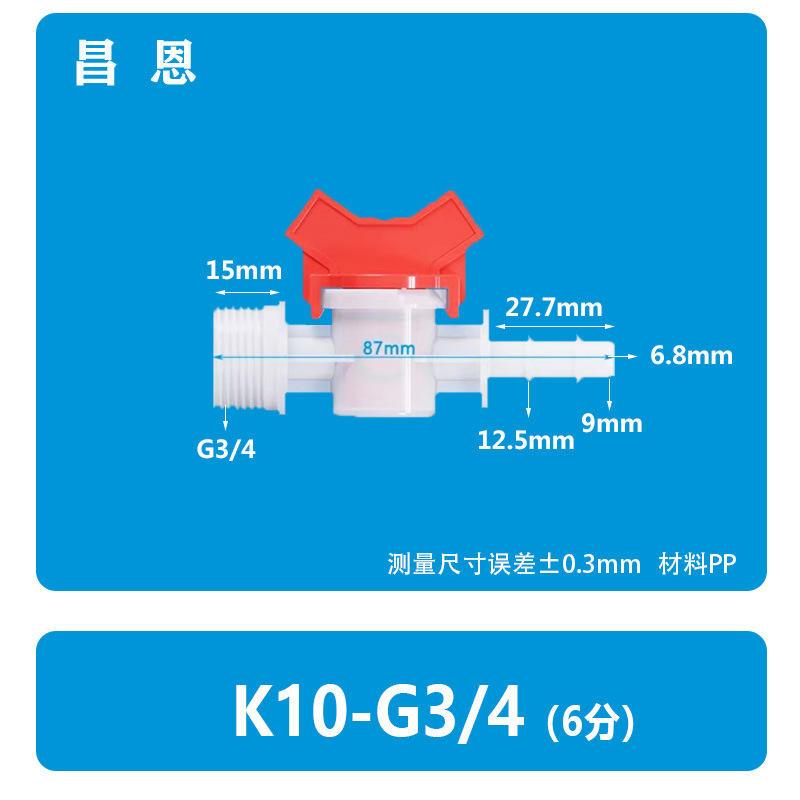 วาล์วบอลแบบพลาสติก 6 จุด เกลียว G3/4 สำหรับระบบน้ำหยด ควบคุมการไหลของน้ำ แก๊ส น้ำมัน สามารถปรับแต่งได้ตามความต้องการ (OEM)