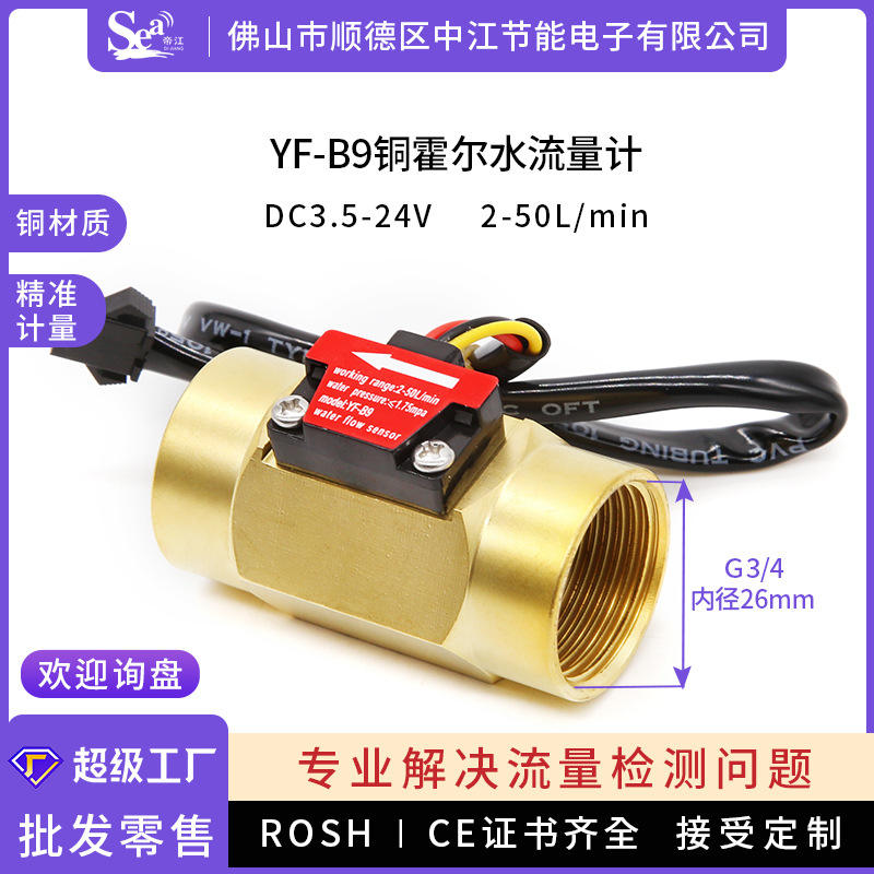 เซ็นเซอร์วัดการไหลของน้ำแบบฮอลล์เอฟเฟกต์ 6 จุด รุ่น B9 พร้อมเกลียวในคู่ สำหรับเครื่องทำน้ำอุ่น ระบบชลประทานในพื้นที่เกษตรกรรม