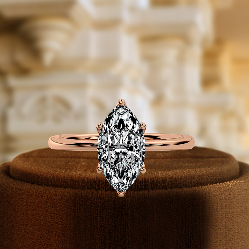 แหวนหมั้นทรงมาร์คีส์ 6 ก้าน ทำจากทองคำแท้ 14k ประดับเพชรแล็บโกรว์ 1 กะรัต แหวนเจ้าสาวเพชรเม็ดเดี่ยว แหวนเพชรโซลิแทร์ แหวนสัญญา