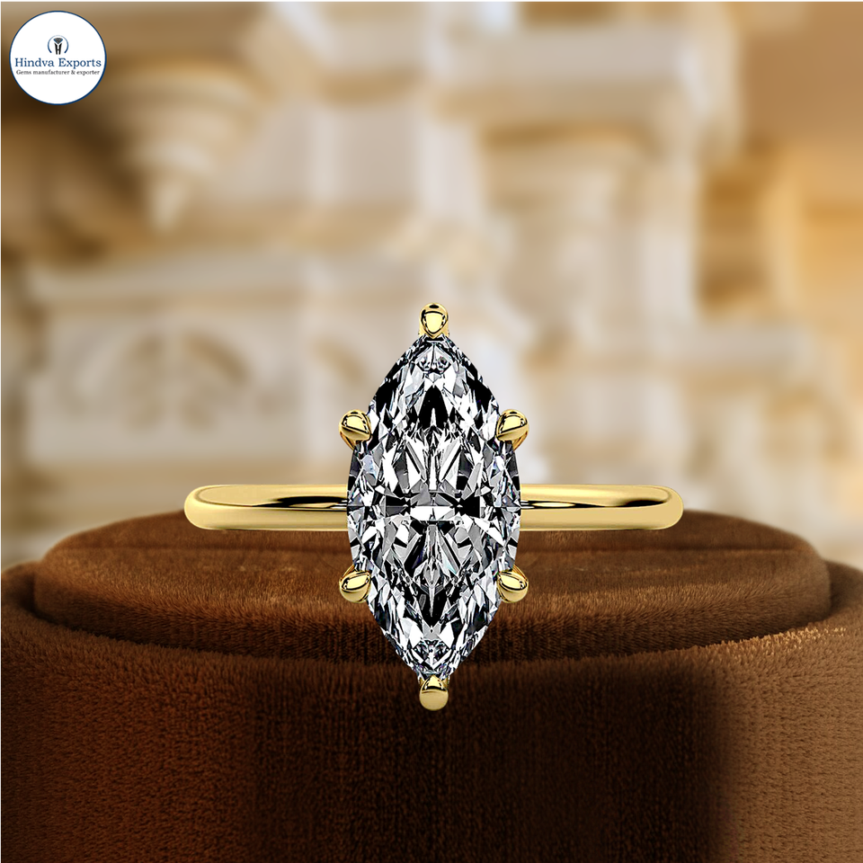 แหวนหมั้นทรงมาร์คีส์ 6 ก้าน ทำจากทองคำแท้ 14k ประดับเพชรแล็บโกรว์ 1 กะรัต แหวนเจ้าสาวแบบโซลิแทร์ แหวนวงแหวนซ่อนแบบฮาโล แหวนสัญญา