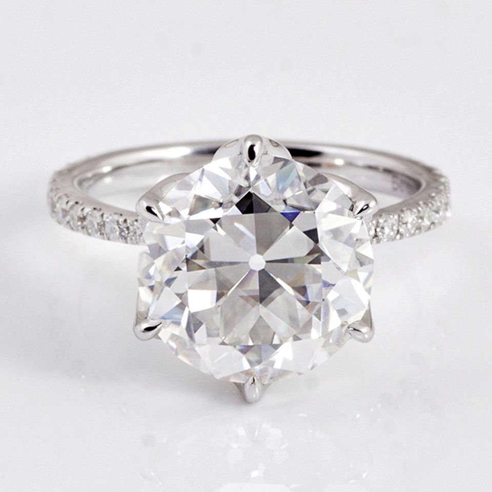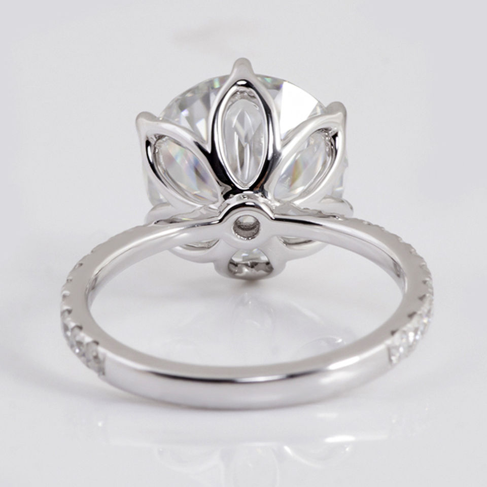 แหวนเพชรโมอิสซาไนต์ทรงกลมแบบยุโรปโบราณ 6 ก้าน 2 กะรัต แหวนหมั้นเพชร DEF Vvs1 สำหรับผู้หญิง ทอง 18K ของขวัญเครื่องประดับ