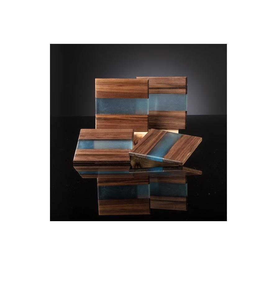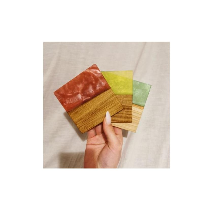 จานรองแก้วสี่เหลี่ยมทำจากเรซินและไม้6ชิ้นแผ่นของขวัญตกแต่งบ้านส่วนบุคคลงานแฮนด์เมดสำหรับเสื่อและแผ่นรองแก้วหิน