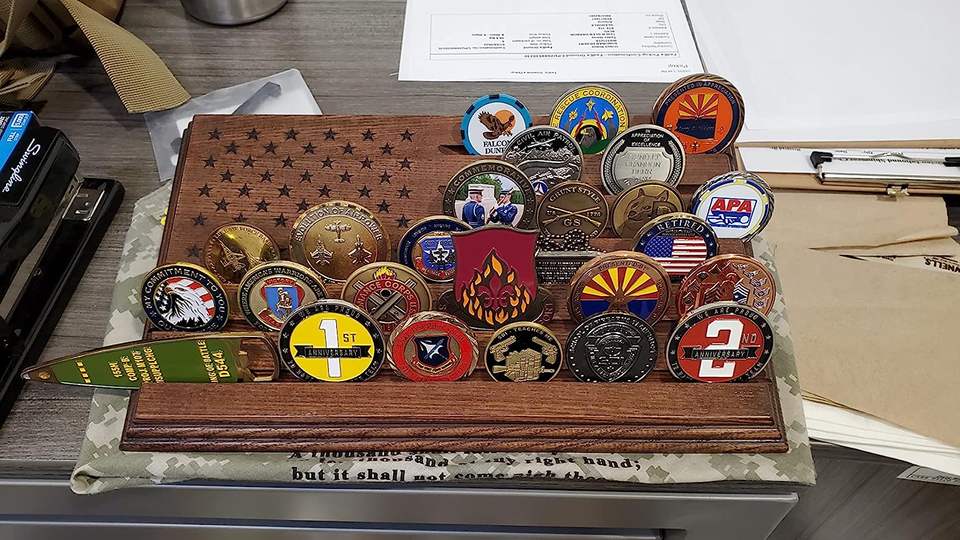 ขาตั้งโชว์เหรียญสะสมความท้าทายของกองทัพใช้