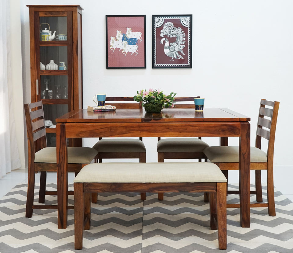 ชุดโต๊ะ 4 เก้าอี้ + 1 ม้านั่ง + 1 โต๊ะ (ชุด 6 ที่นั่ง)