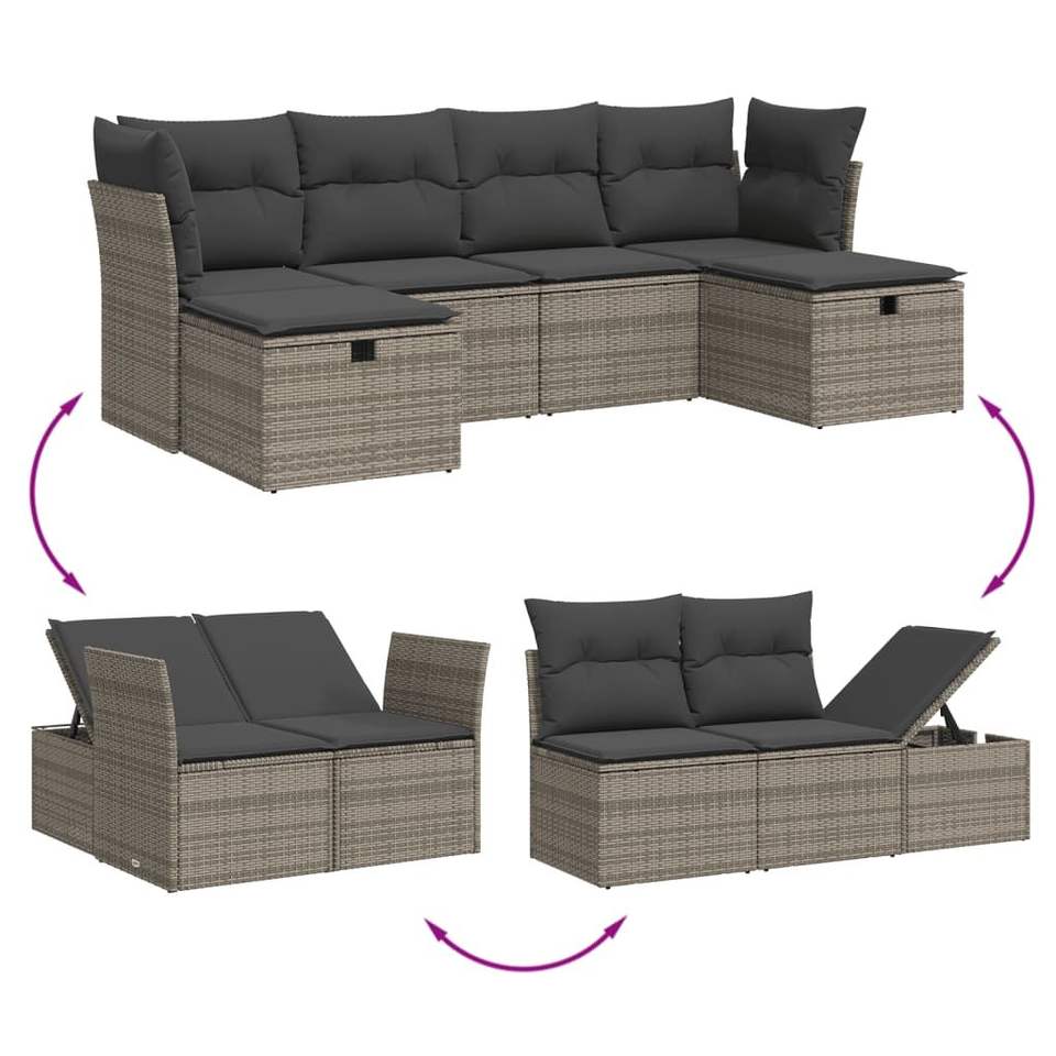 ชุดโซฟาสวนหวายเทียม PE สีเทาแบบโมดูลาร์ 6 ที่นั่ง