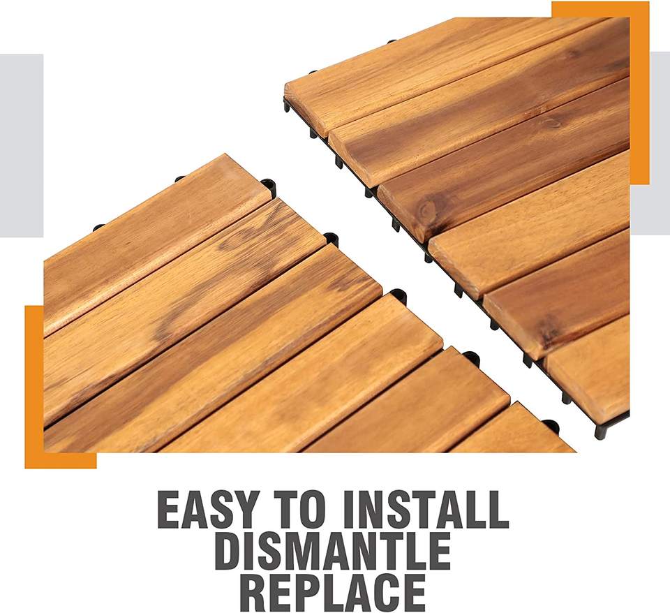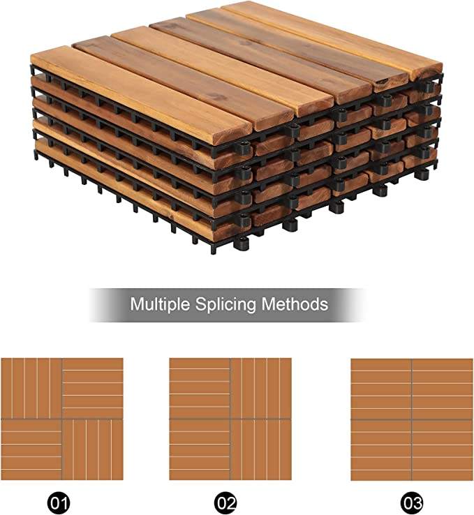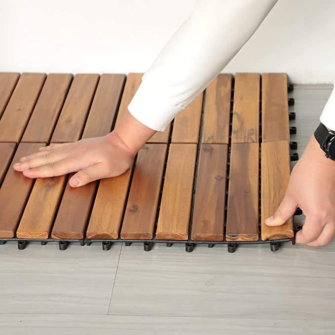 กระเบื้องอะคาเซียสำหรับปูพื้นแบบต่อประสานติดตั้งง่ายสีธรรมชาติ6แผ่น