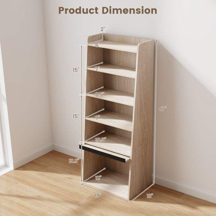ชั้นวางหนังสือแบบตั้งพื้น 6 ชั้น พร้อมชั้นวางปรับระดับได้ 2 ชั้น และชั้นวางแบบเปิดปิดได้ สำหรับบ้าน สำนักงาน หรือห้องสมุด