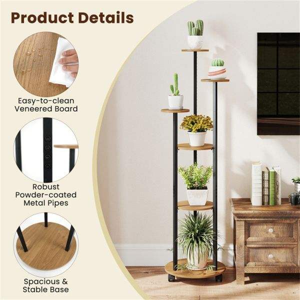 ชั้นวางต้นไม้แบบสมาร์ท 6 ชั้น พร้อมแถบไฟ RGB และรีโมทคอนโทรล ควบคุมผ่านแอปสมาร์ทโฟน สำหรับตกแต่งบ้าน กระถางและกระถางปลูกต้นไม้สีธรรมชาติ