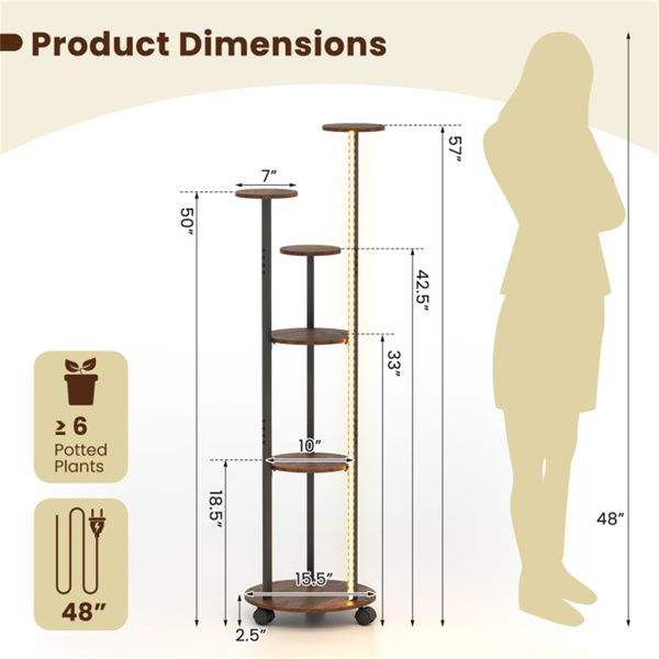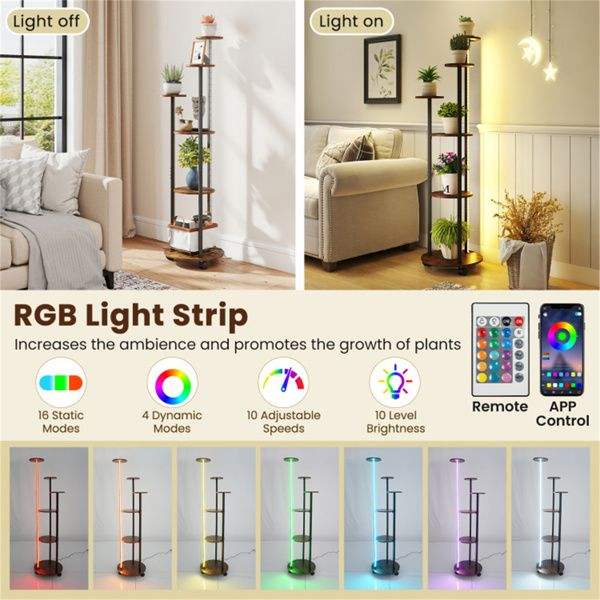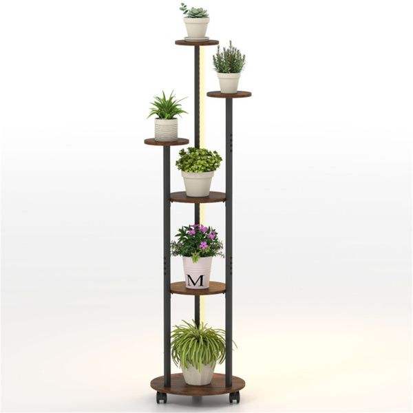 ชั้นวางต้นไม้แบบสมาร์ท 6 ชั้น พร้อมแถบไฟ RGB ควบคุมผ่านแอปและรีโมท สีน้ำตาลสไตล์เรโทร สำหรับตกแต่งบ้าน