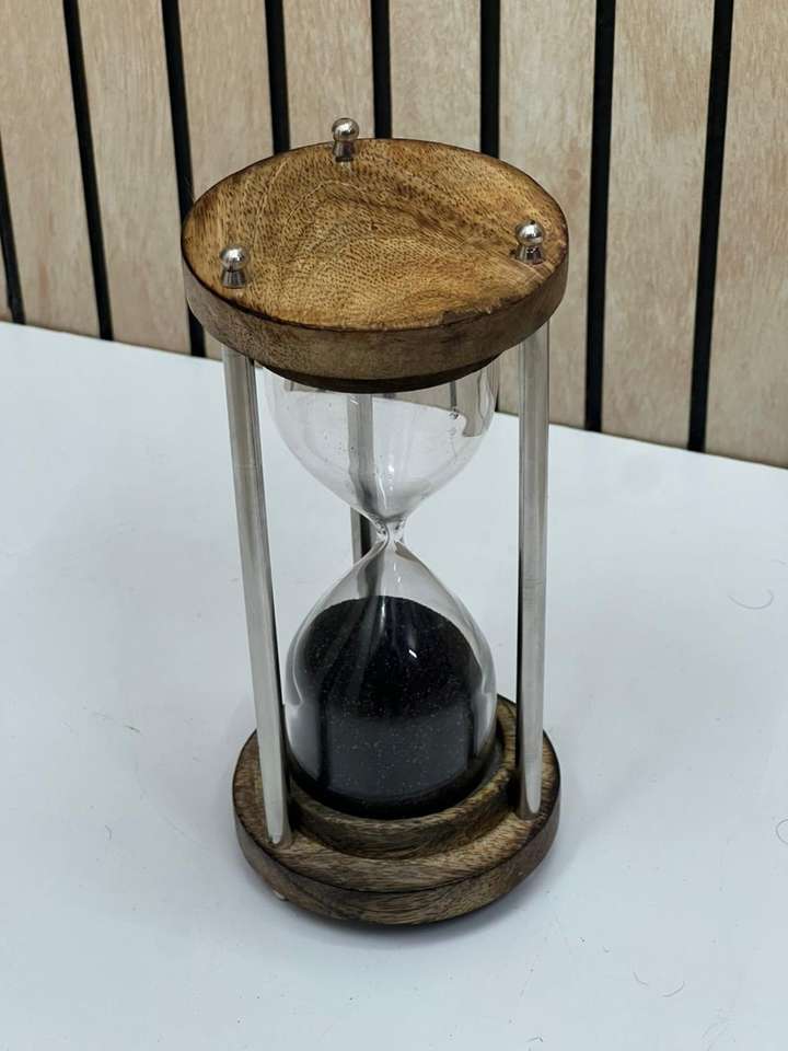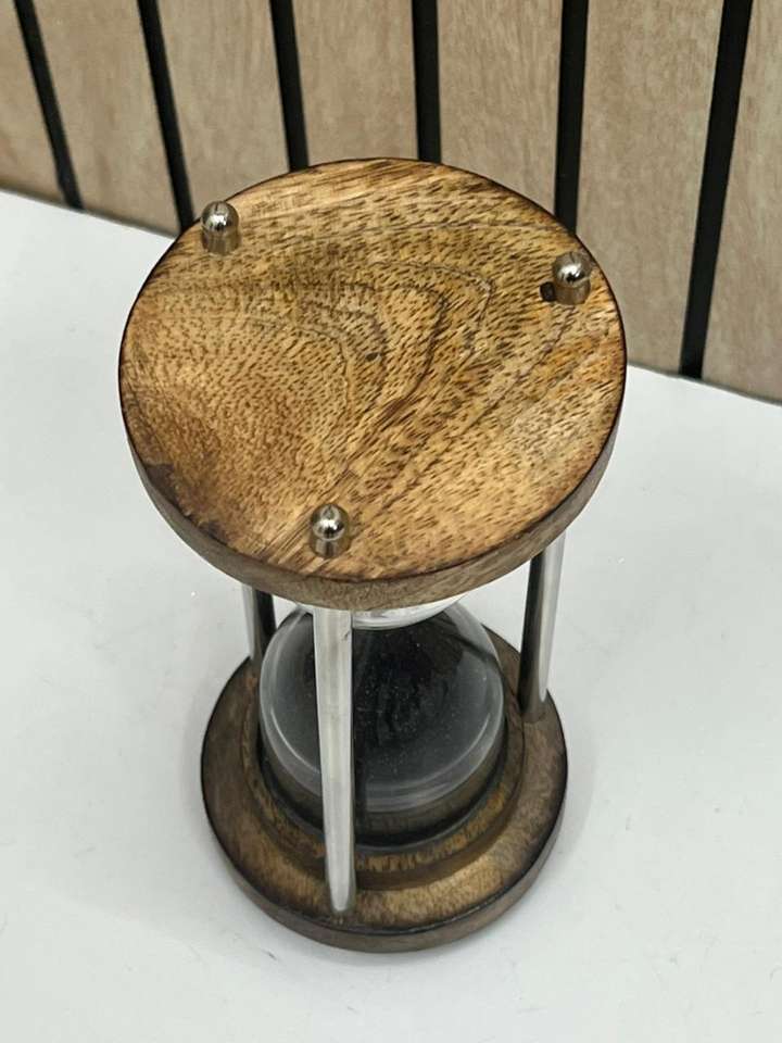 นาฬิกาทรายไม้ขนาด 6 นิ้ว พร้อมทรายสีดำ | นาฬิกาทรายตั้งโต๊ะตกแต่งสไตล์เรียบง่าย