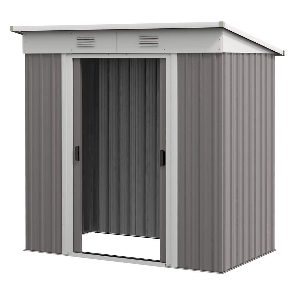 6' X 4' Metal Garden Shed with Dual Locking Doors 2 Air Vents Steel Frame Gray Lawn Shade for Backyard Tool Storage