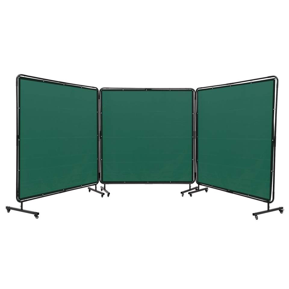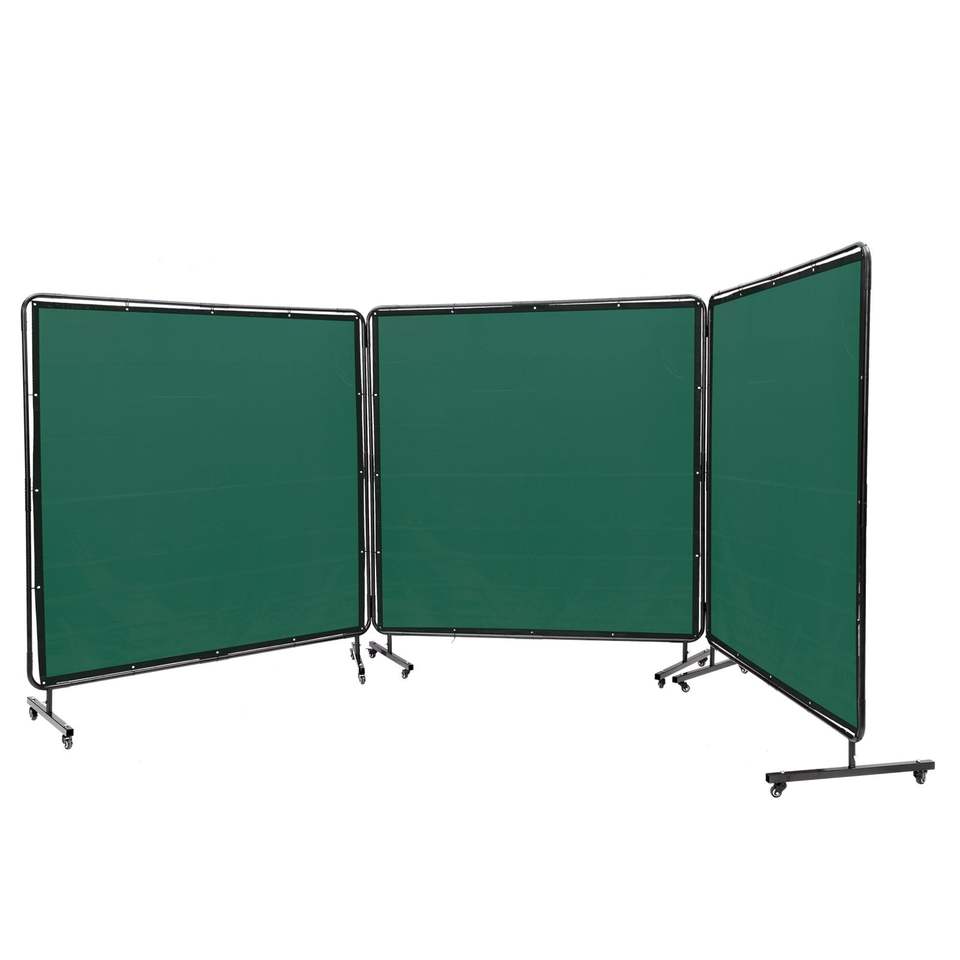 กรอบหน้าจอเชื่อมไวนิลทนไฟ 3 แผง ขนาด 6x6 ฟุต พร้อมแผ่นป้องกันแบบหมุนได้ 12 แผ่น สำหรับป้องกันการเชื่อม