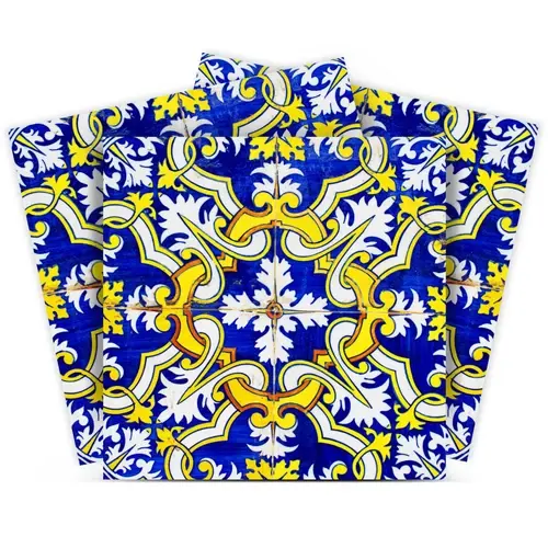กระเบื้องพอร์ซเลนลอกและสติ๊ก6 "x 6" สีน้ำเงินและเหลืองเคลือบอีพ็อกซี่ผิวมันกันลื่นสำหรับพื้นภายใน